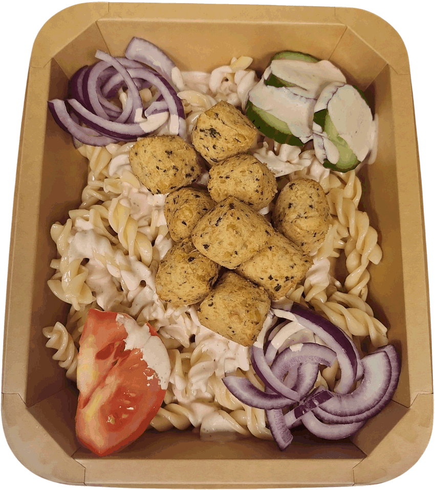 Kyckling, tonfisk, tofu, räkor, kallrökt lax, eller andra alternativ.